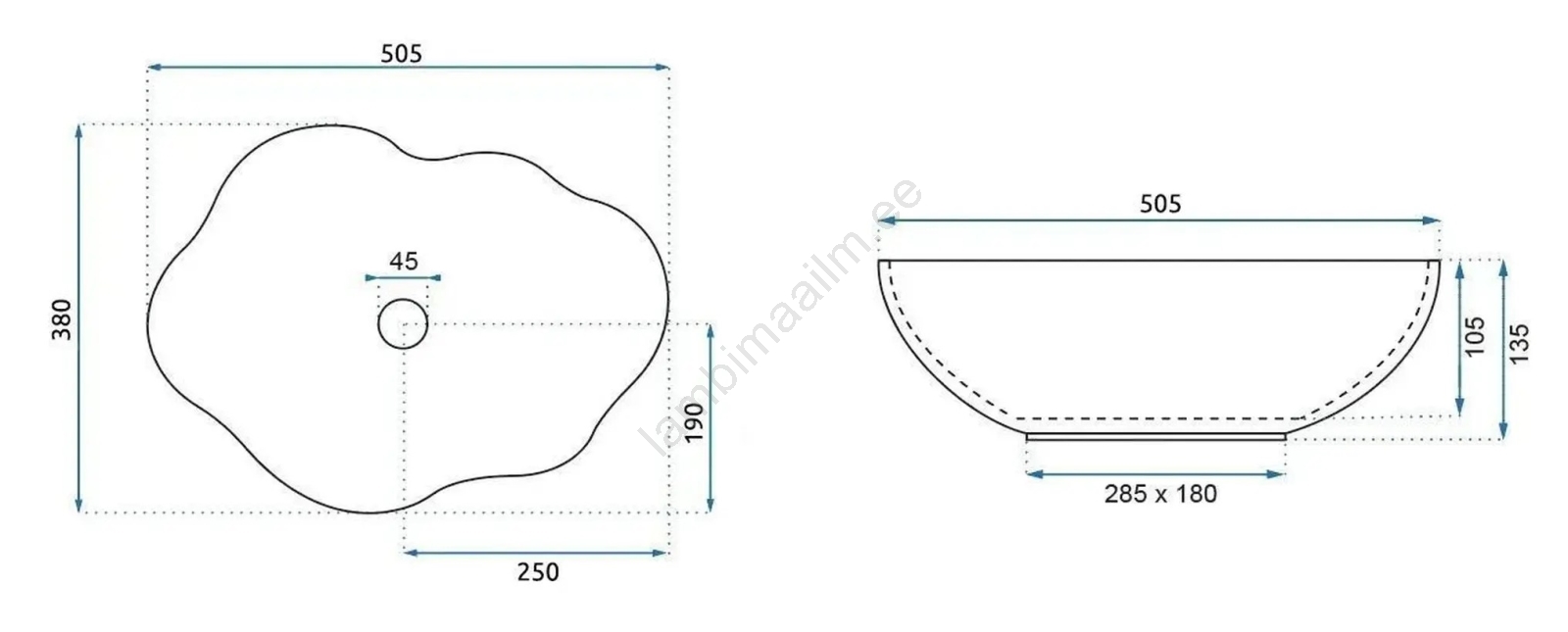 • Valamu on valmistatud kõrge kvaliteediga sanitaar-keraamikast.