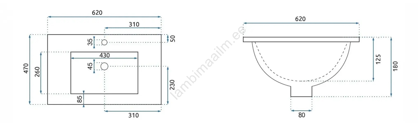 • Valamu on valmistatud kõrge kvaliteediga sanitaarkeraamikast.