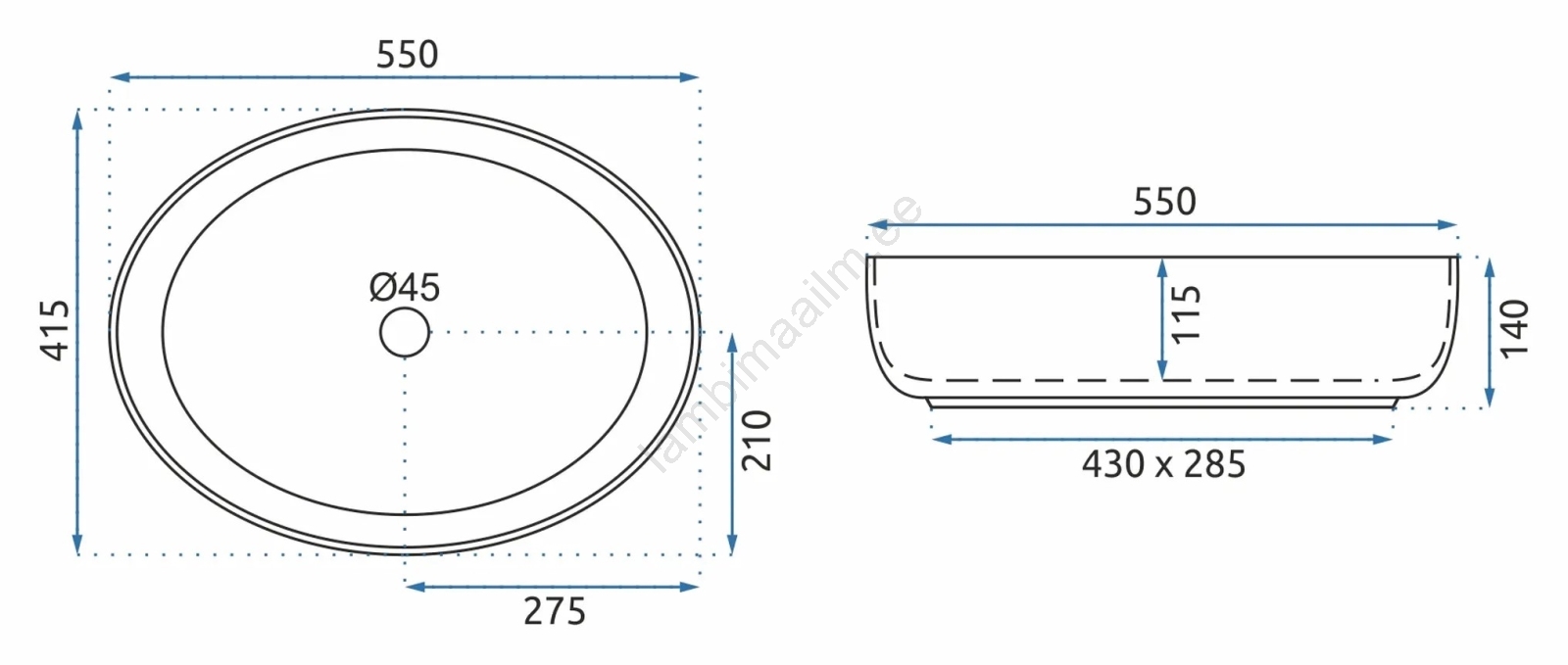 • Valamu on mõeldud töötasapinnale paigaldamiseks, kuid seda saab kombineerida ka kapiga.