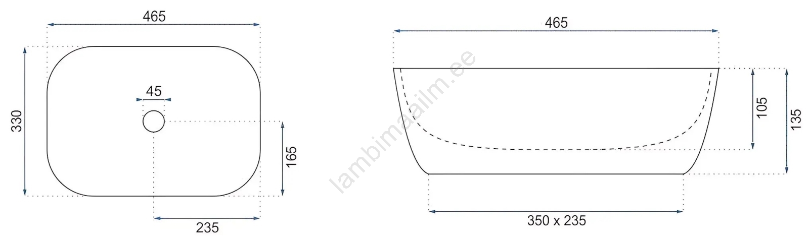 • REA-U3800 - Lauaplaadile paigaldatav valamu LIVIA 33,5x46,5 cm keraamika/hall/kiviimitatsioon