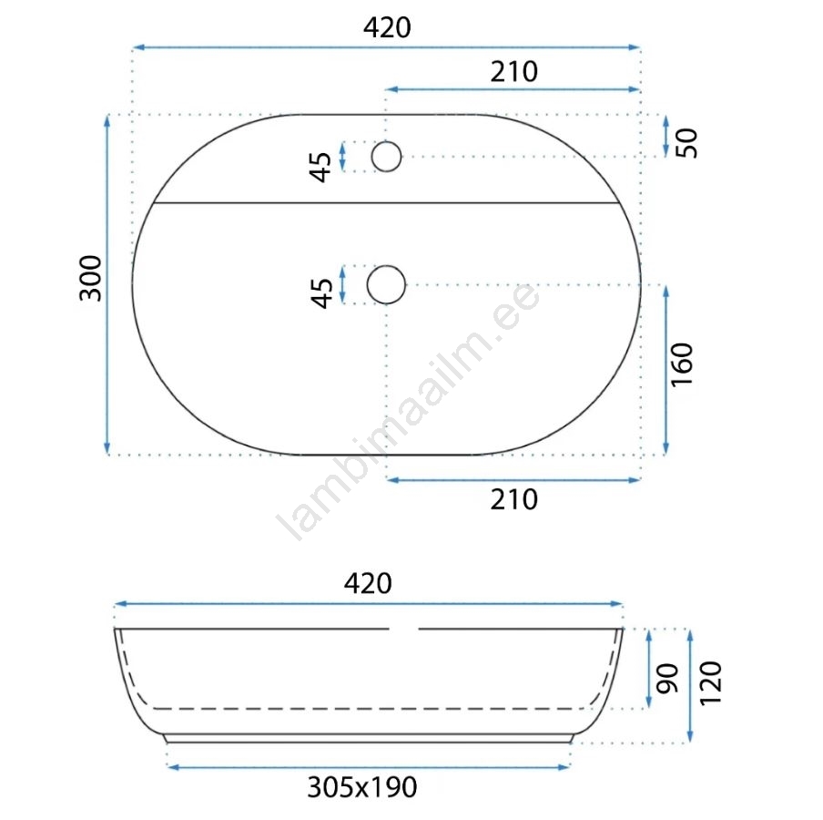 REA-U6617 - Lauapealne valamu AURA 30x42 cm keraamika/läikiv valge | Lambimaailm