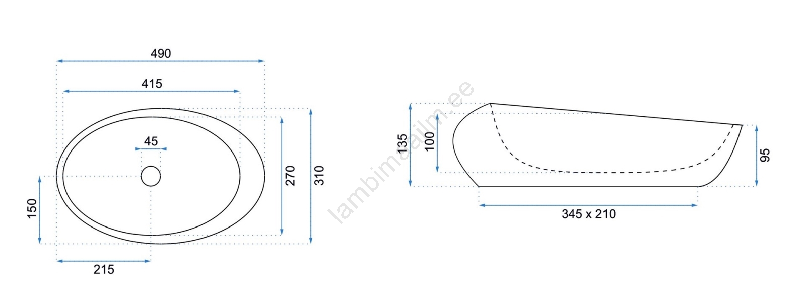 REA-U6650 - Tööpinnale paigaldatav valamu ROXY 31x49 cm keraamika/hall/marmori dekoor | Lambimaailm