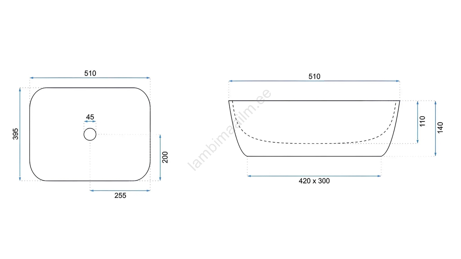 • Valamu segisti ja äravool ei kuulu komplekti.