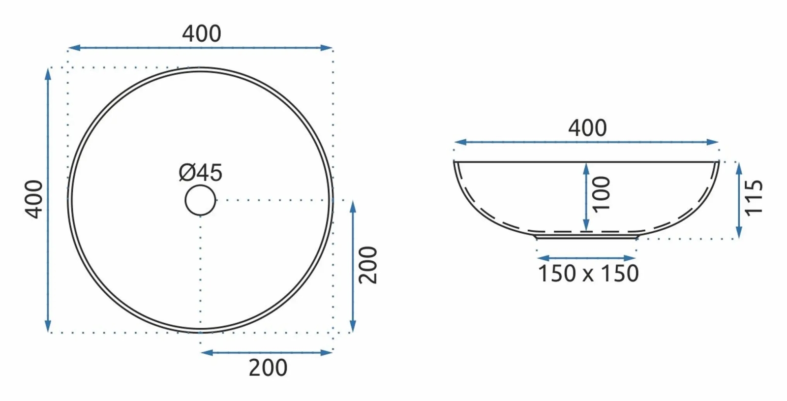 • REA-U3608 - Lauale paigaldatav valamu JULIANA 40 cm keraamika/valge/sinine