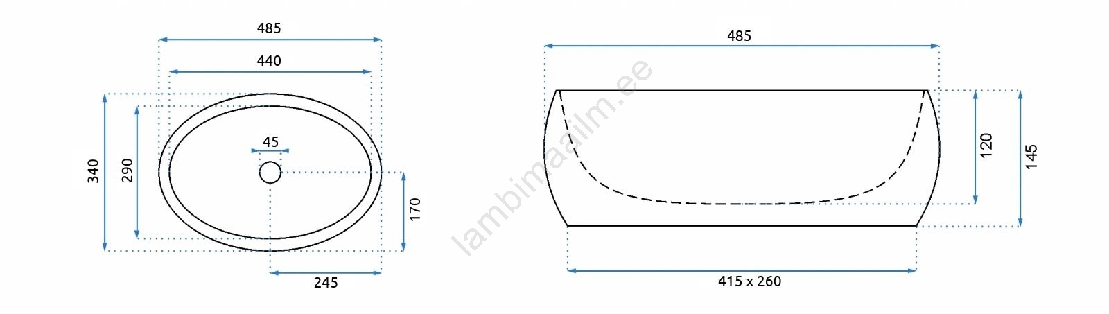 • REA-U1020 - Lauale asetatav valamu LINDA 34x48,5 cm, keraamika/kivimitatsioon