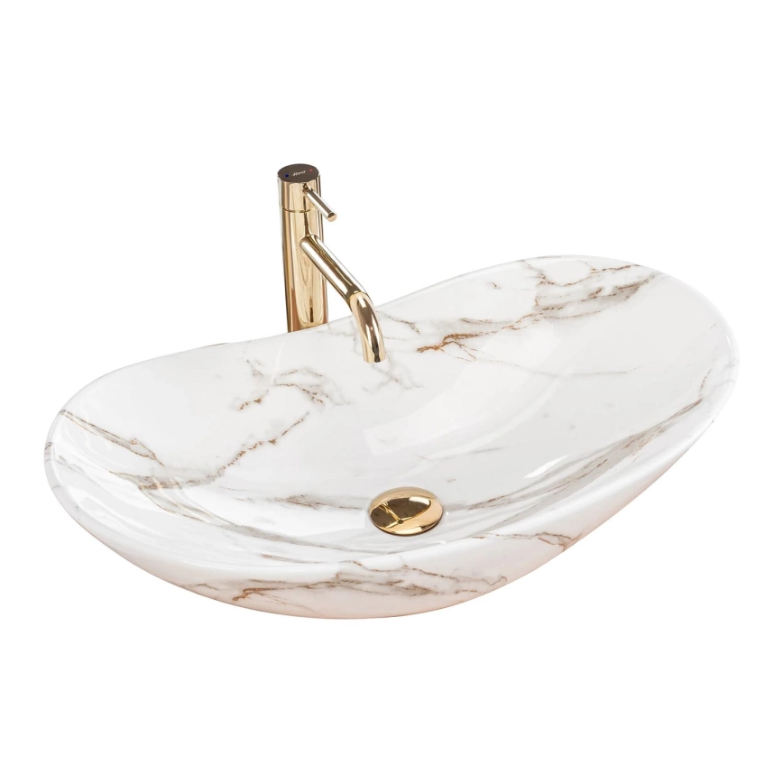 • REA-U8570 - Lauale asetatav valamu ROYAL 36x62 cm keraamika/läikiv valge/kuldne