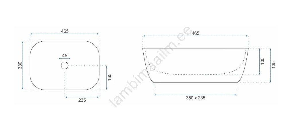 • REA-U3800 - Lauaplaadile paigaldatav valamu LIVIA 33,5x46,5 cm keraamika/hall/kiviimitatsioon