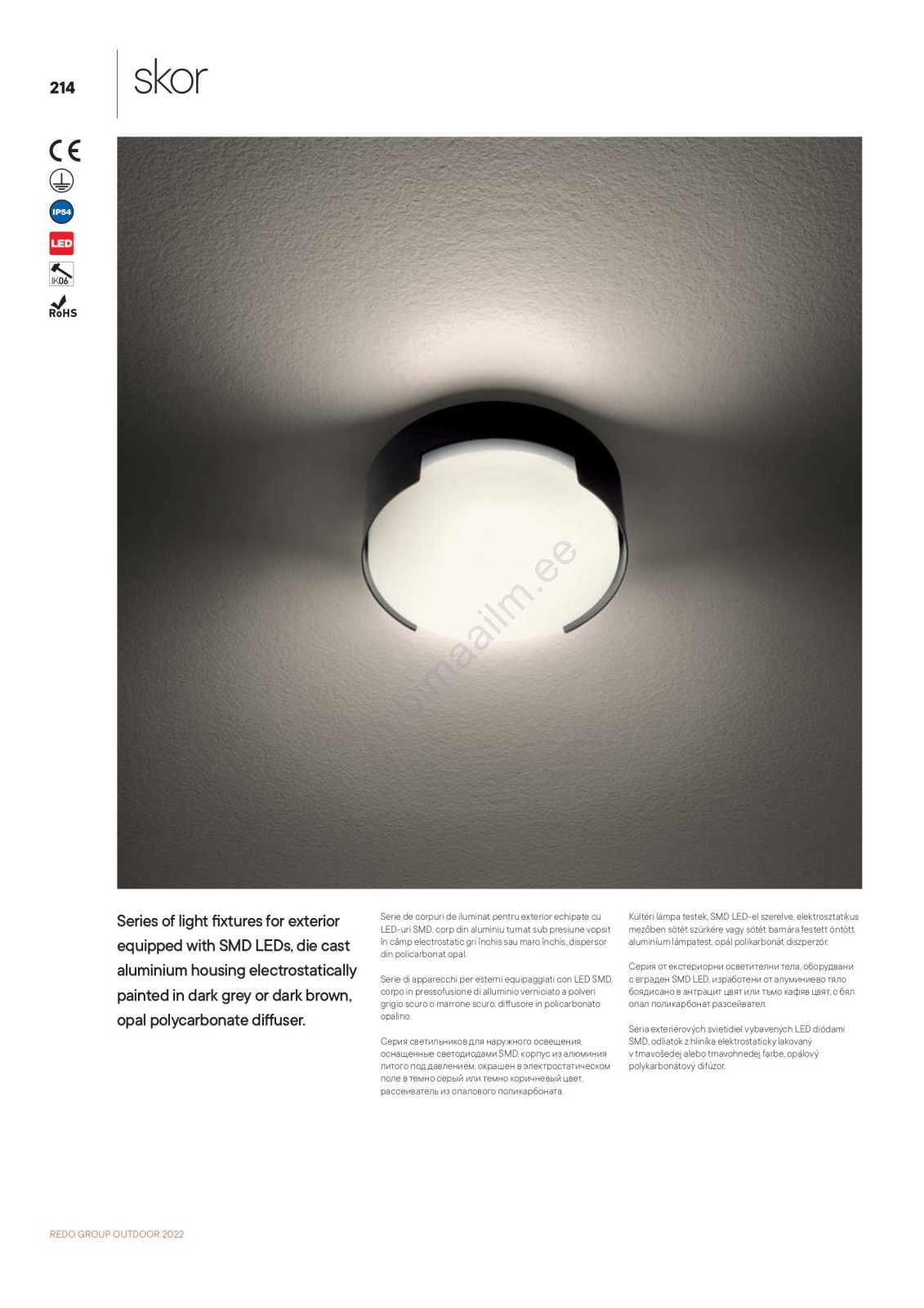 Redo 90003 - LED Laevalgusti õue SKOR LED/12W/230V IP54 hall | Lambimaailm