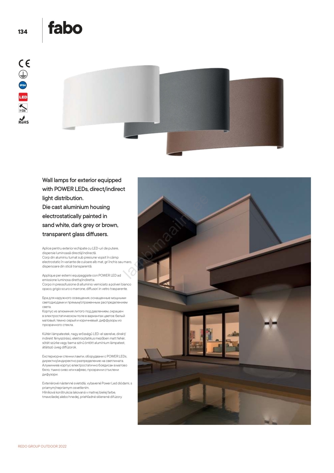 Redo 90226 - LED Väli seinavalgusti FABO LED/6W/230V 3000K IP54 hall | Lambimaailm