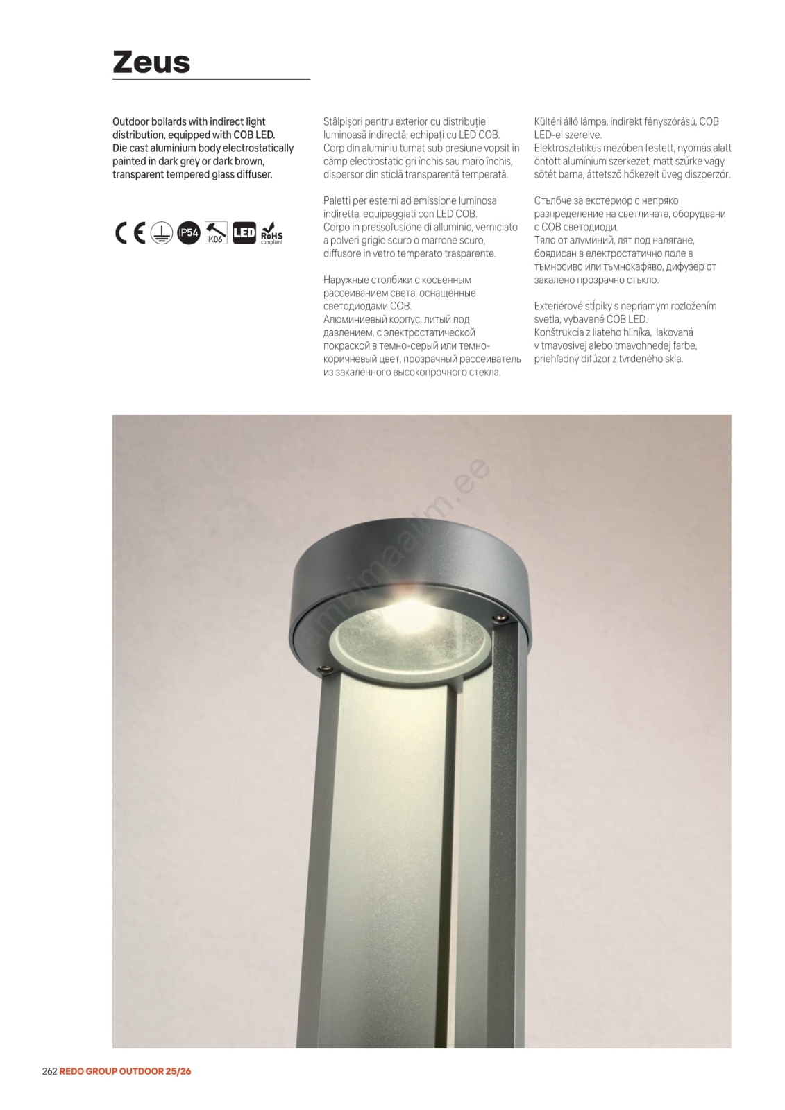 Redo 90365 - ZEUS LED-välisvalgusti 11,5W/230V 3000K 75 cm IP54 antratsiit | Lambimaailm
