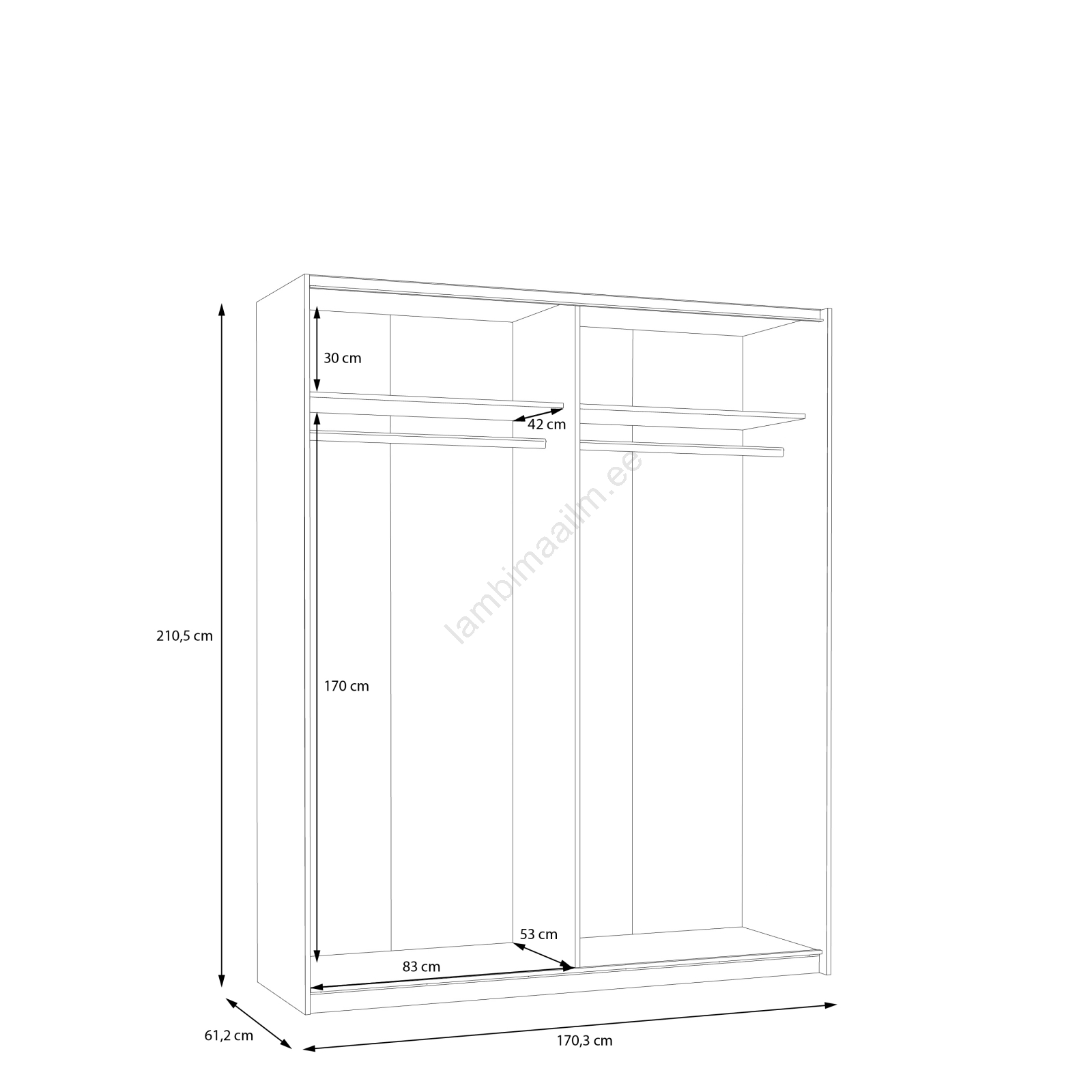 • Täiendavad sisemised riiulid on lisaks saadaval siin: 3 tk riiulit 82,9x42 cm.
