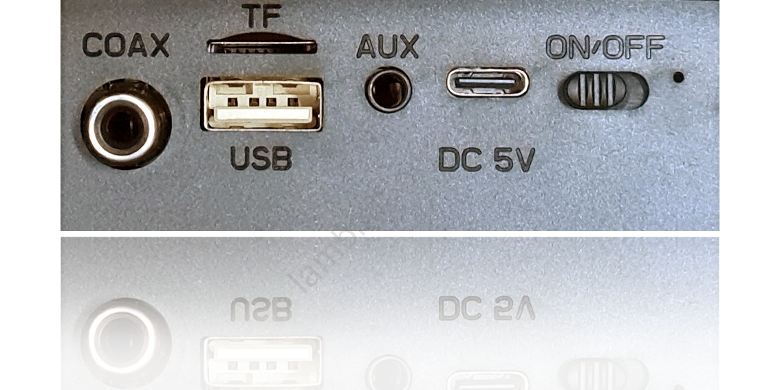 • Helisisendid: 3,5mm Jack (AUX) ja RCA koaksiaalne sisend TV või PC ühendamiseks.