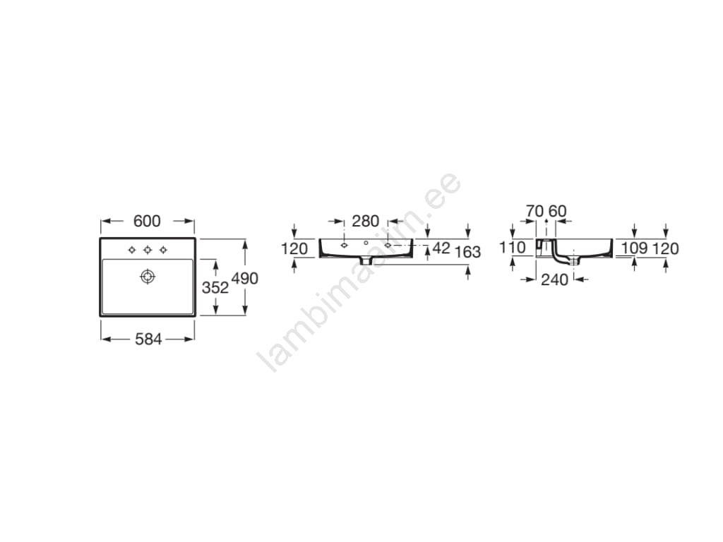 • Pakend sisaldab valamut ilma sifooni ja segistita.