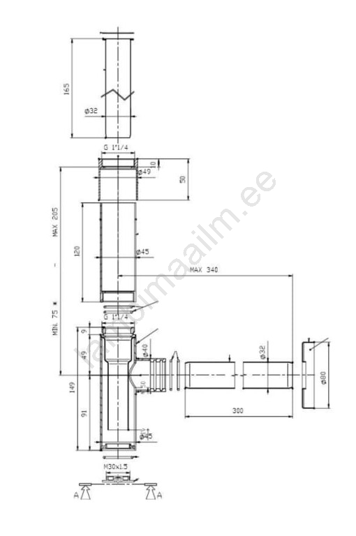 • Valamu sifoon 1 1/4".