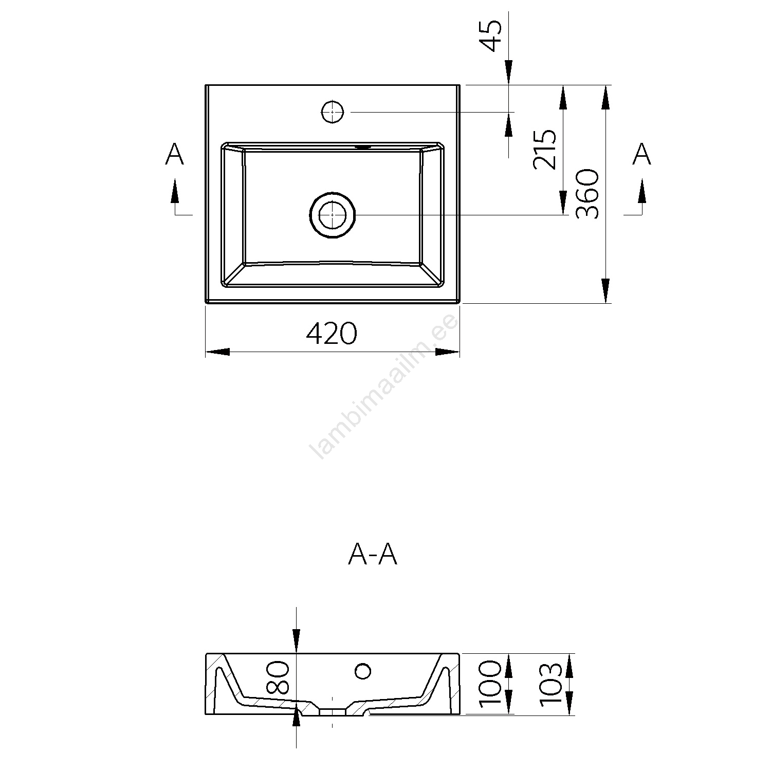 • Valamu on valmistatud valatud marmorist.