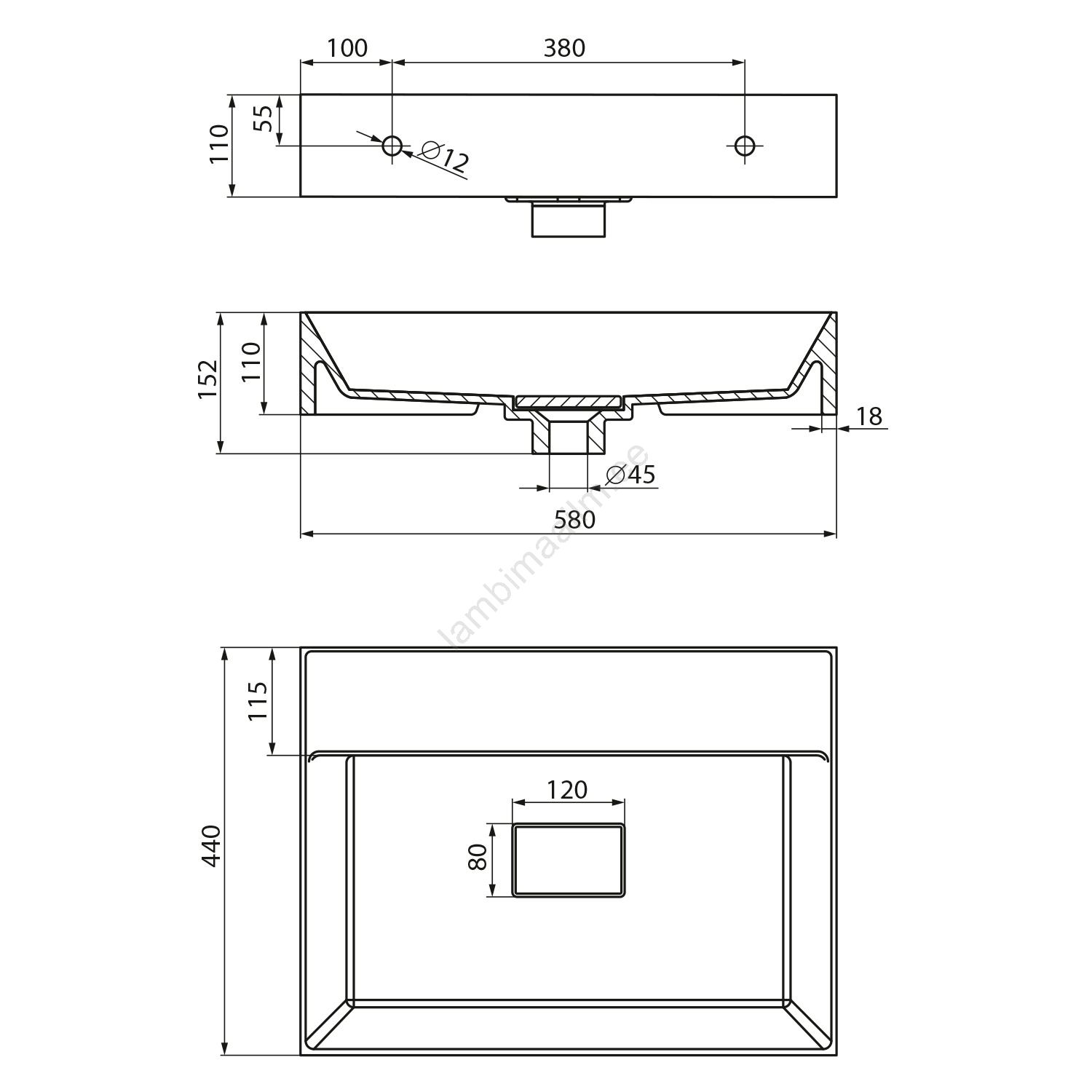• Mõõtmed 580x440 mm ja kõrgus 110 mm.