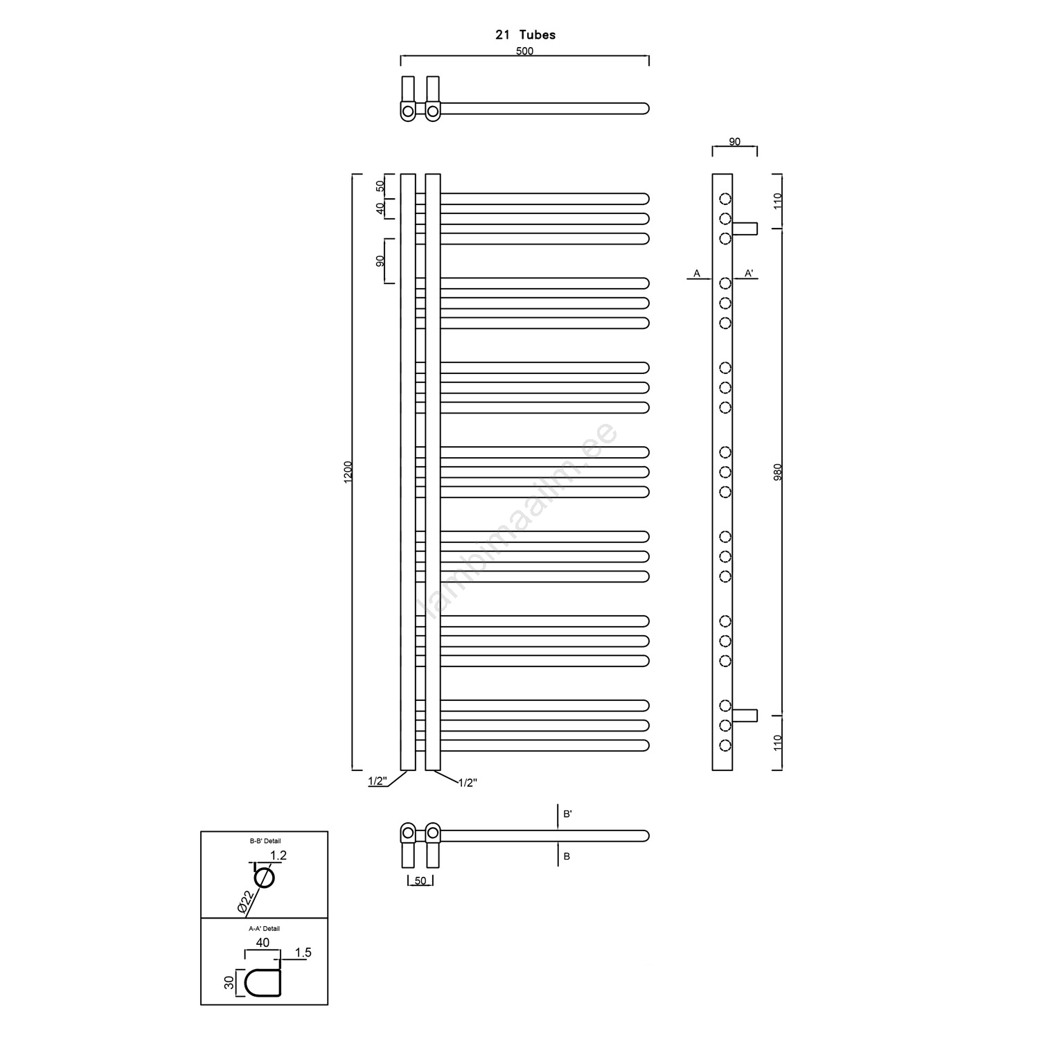 Sapho - Vannitoa radiaator DORLION 400W/230V 50x120 cm mati must | Lambimaailm