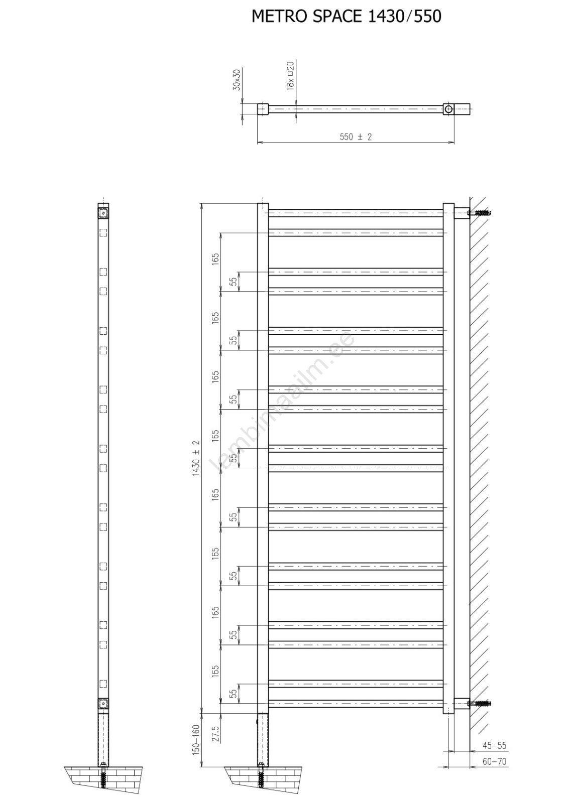 Sapho - Vannitoa radiaator METRO SPACE 525W/230V 55x143 cm mattmust