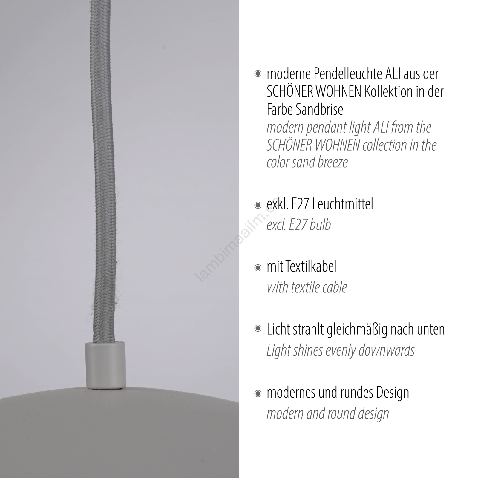 Schöner Wohnen 11728-39 - rippvalgusti ALI kaabliga 1xE27/25W/230V, läbimõõt 38 cm, hall iseloomustab kena ja funktsionaalne disain.  Valgustile sobib E27 keermega pirn. Siit saate soodsate hindadega osta ka teisi pirne. Saate huvitava lisandi oma koju.