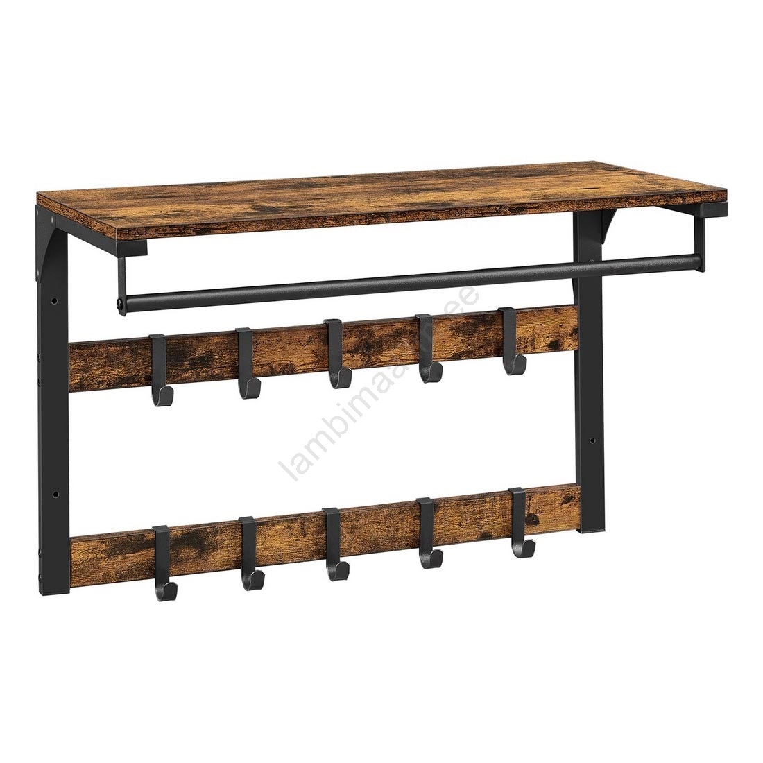 Seinale kinnitatav riidenagi riiuliga NATE pruun/must | Lambimaailm