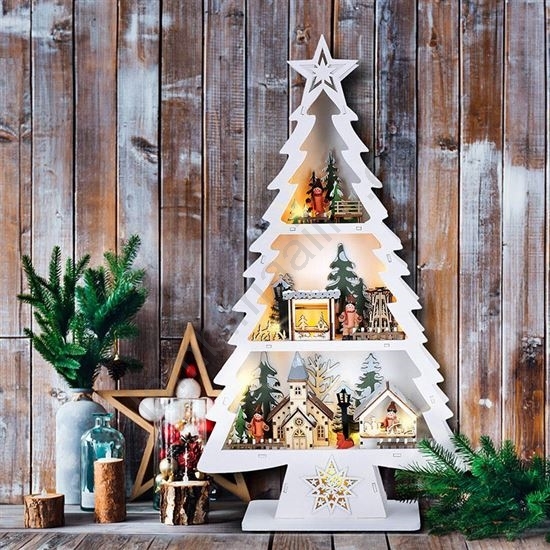 LED jõulukaunistus 13xLED/2xAA puidust kuusekuju