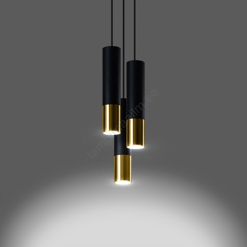 Lühter LOOPEZ 3xGU10/10W/230V ümmargune must/kuldne iseloomustab kena ja funktsionaalne disain.  Valgustile sobib GU10 keermega pirn. Siit saate soodsate hindadega osta ka teisi pirne. Saate huvitava lisandi oma koju.