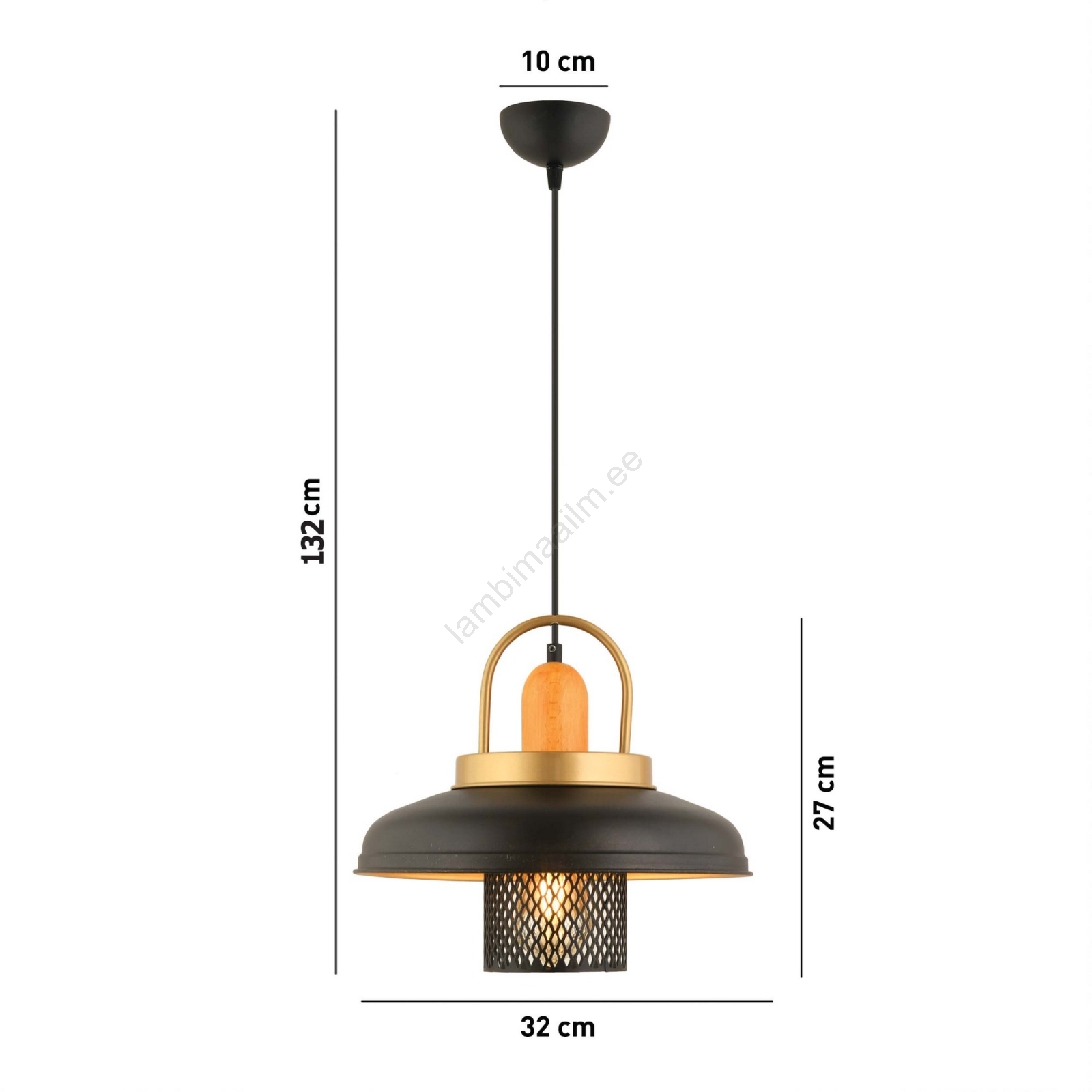 Kaabliga ripatslühter MONZA, 1xE27/40W/230V, läbimõõt 32 cm, must/kuldne