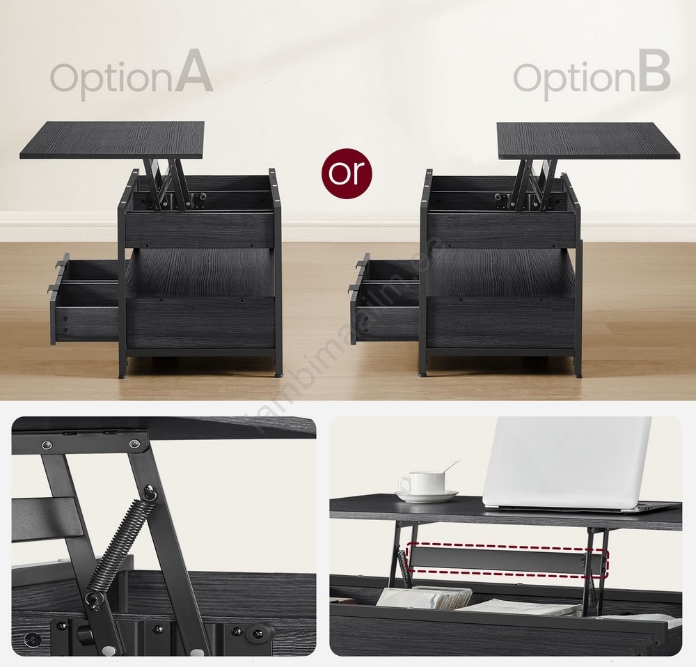 • Kohvilaud tõstetava lauaplaadiga NYRO pruun/must