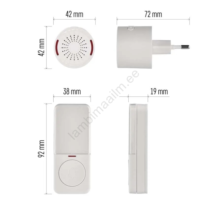 Traadita uksekell pistikusse 230V + 1xCR2032 valge | Lambimaailm