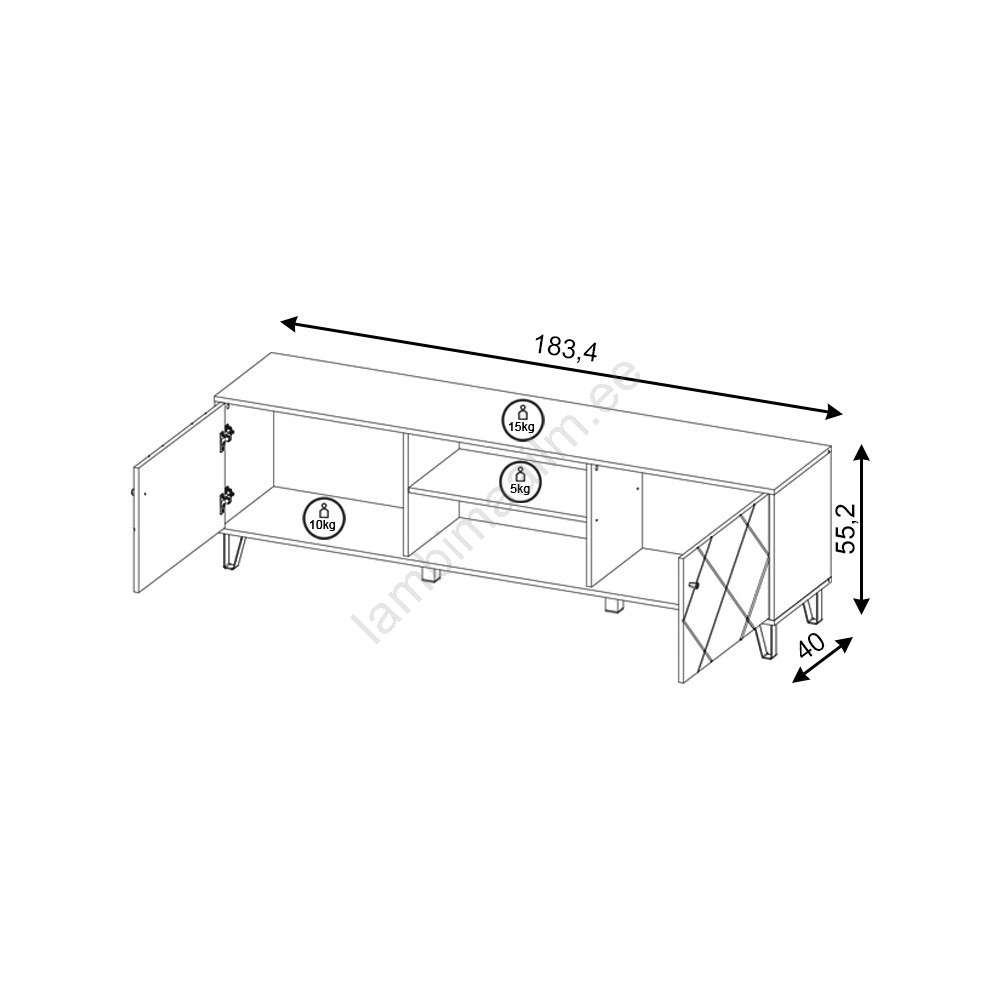 • Tänu pika ristkülikukujulisele vormile sobib see ideaalselt seinale paigaldatava teleri alla või kaasaegseks hoiulahenduseks elutoas.