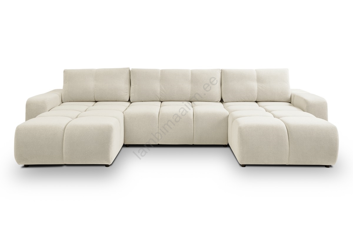 • Voodiks muudetav polsterdatud U-kujuline diivanikomplekt ALMADA, panipaigaga, beež