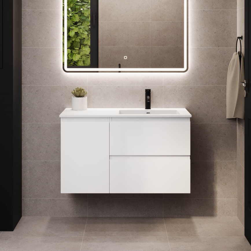 • Vannitoakapp koos valamuga HELSINKI 95 cm vasakpoolne/valge