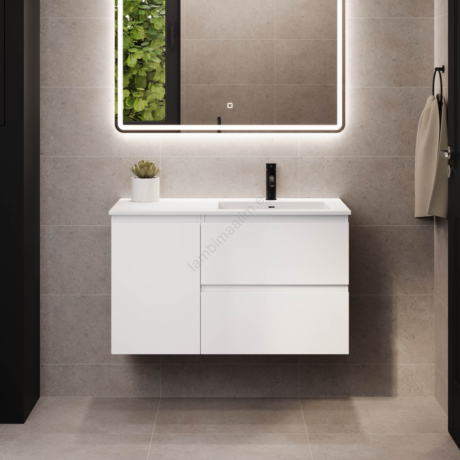 • Vannitoa kapp koos valamuga HELSINKI 95 cm, parem/valge