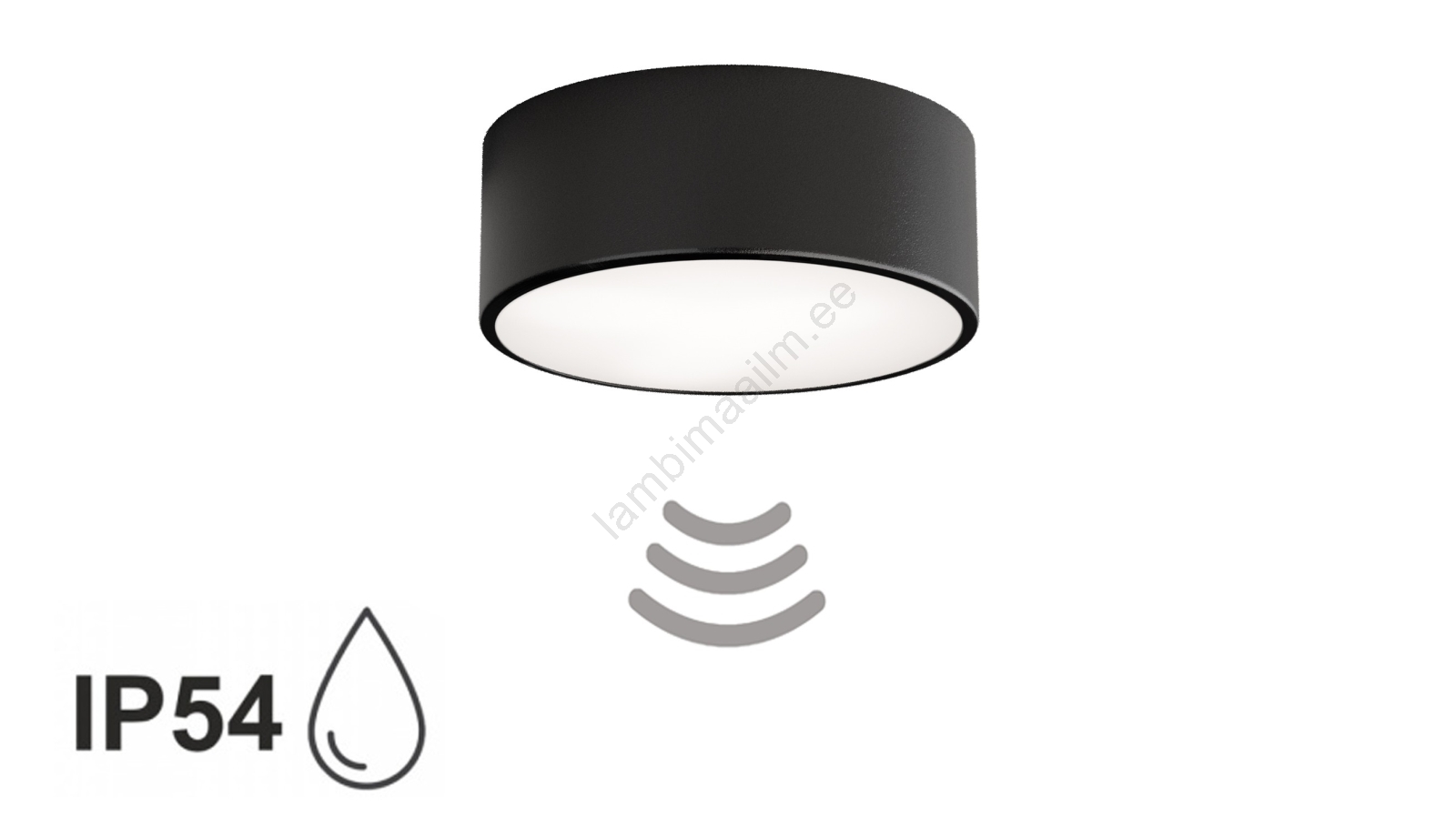 Vannitoa laelamp CLEO anduriga 1xE27/24W/230V, läbimõõt 20 cm, IP54, must | Lambimaailm