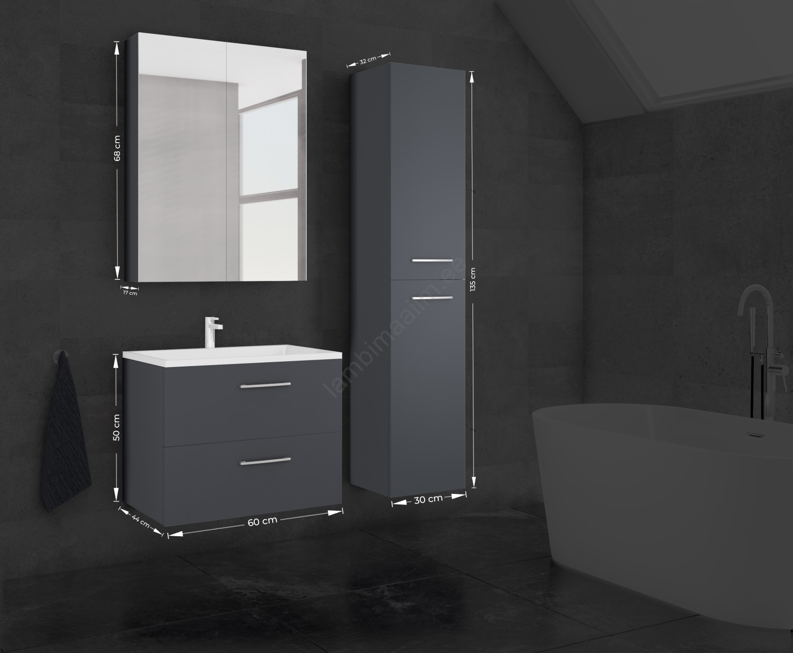 Vannitoakapp koos valamuga KATE + peegelkapp + seinakapp antratsiit | Lambimaailm