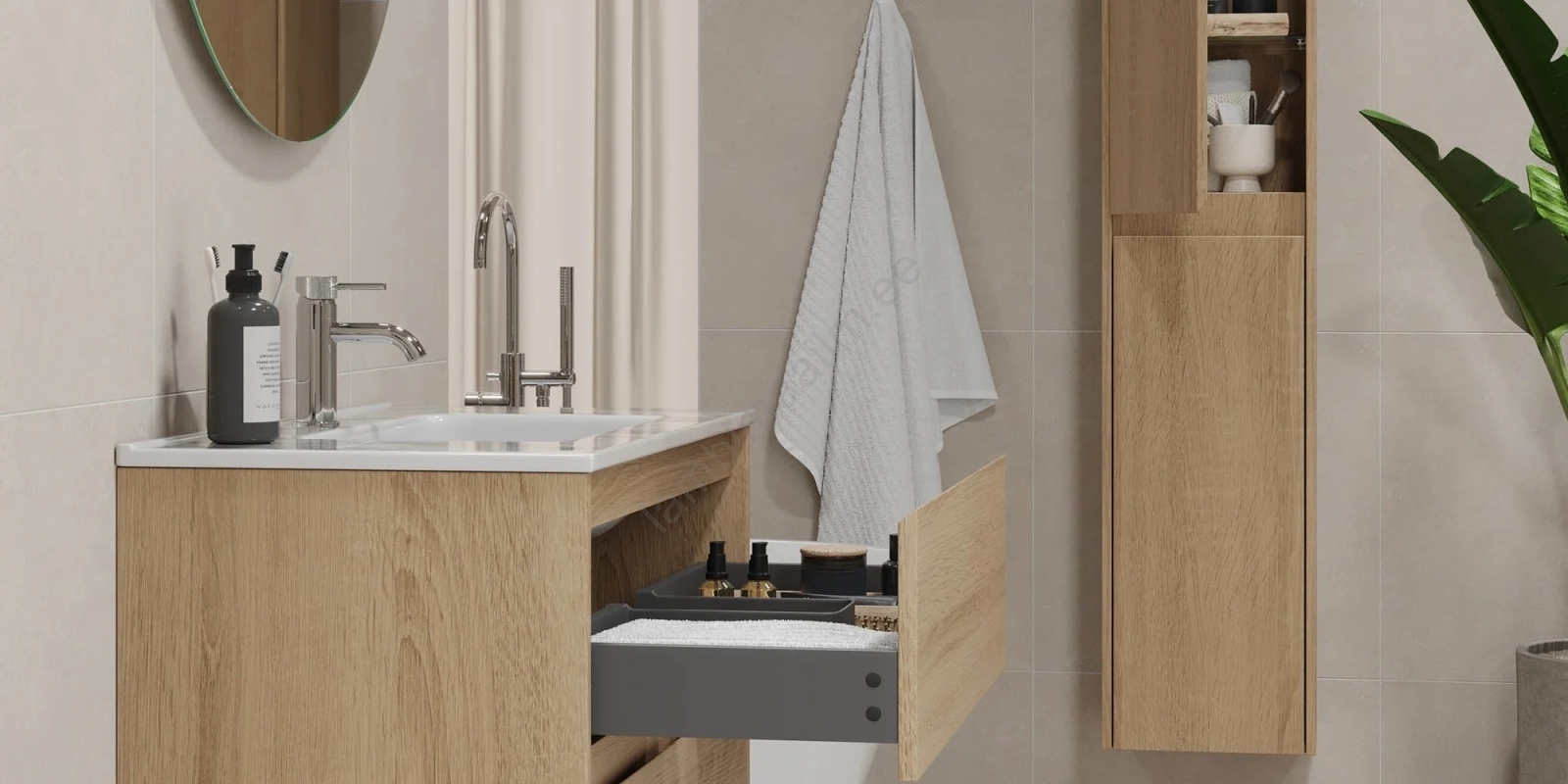 • Vannitoakapp koos valamuga MOLDE 80 cm, tammeviimistlusega