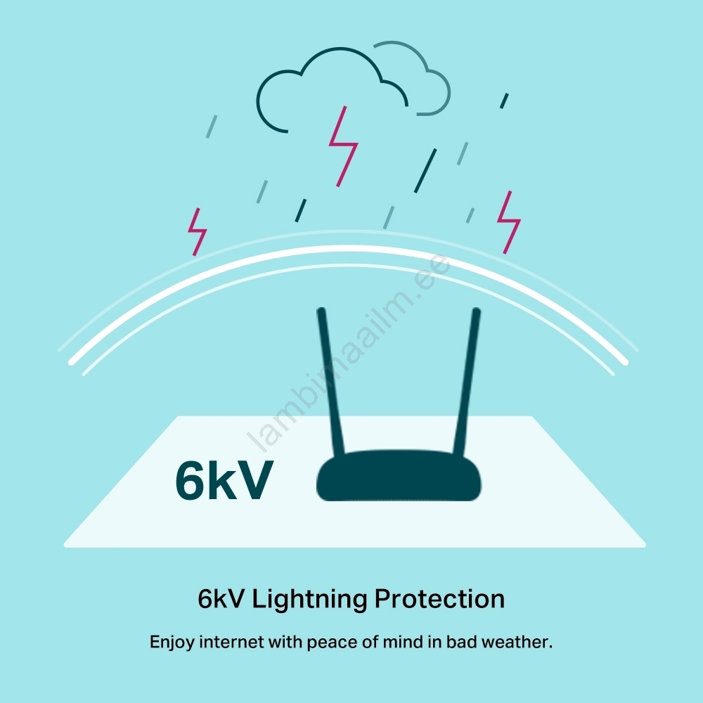 • Tugineb Wi‑Fi 4 standardile 2,4 GHz sagedusalas, traadita kiirus kuni 300 Mb/s — ideaalne igapäevaseks surfamiseks, voogedastuseks ja koduvõrguks.