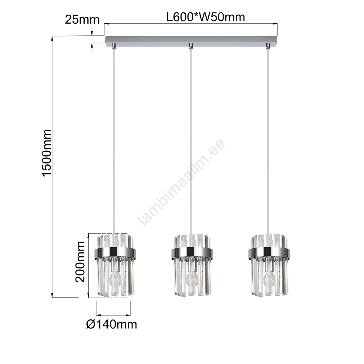• VETRO ripplühter kaablil 3xE14/10W/230V läikiv kroom