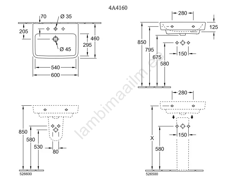Villeroy & Boch 4A416001 - Seinale riputatav valamu O.NOVO 60x46 cm keraamika/valge | Lambimaailm