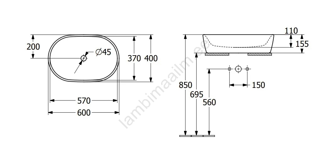Villeroy & Boch 5A266001 - Lauale paigaldatav valamu ARCHITECTURA 60x40 cm keraamika/valge | Lambima