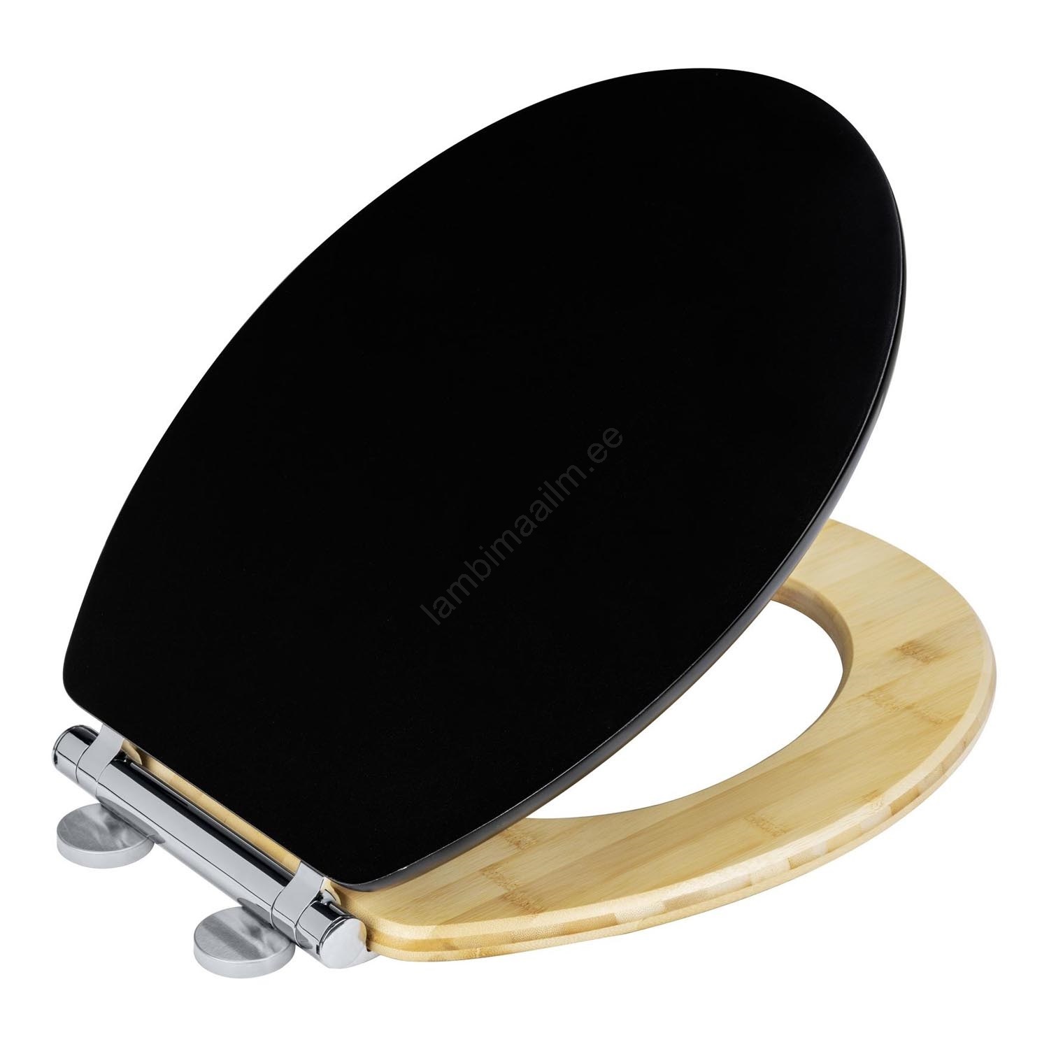 • Stiilne WC-iste, millel on must MDF-kaas ja naturaalne bambusest iste.