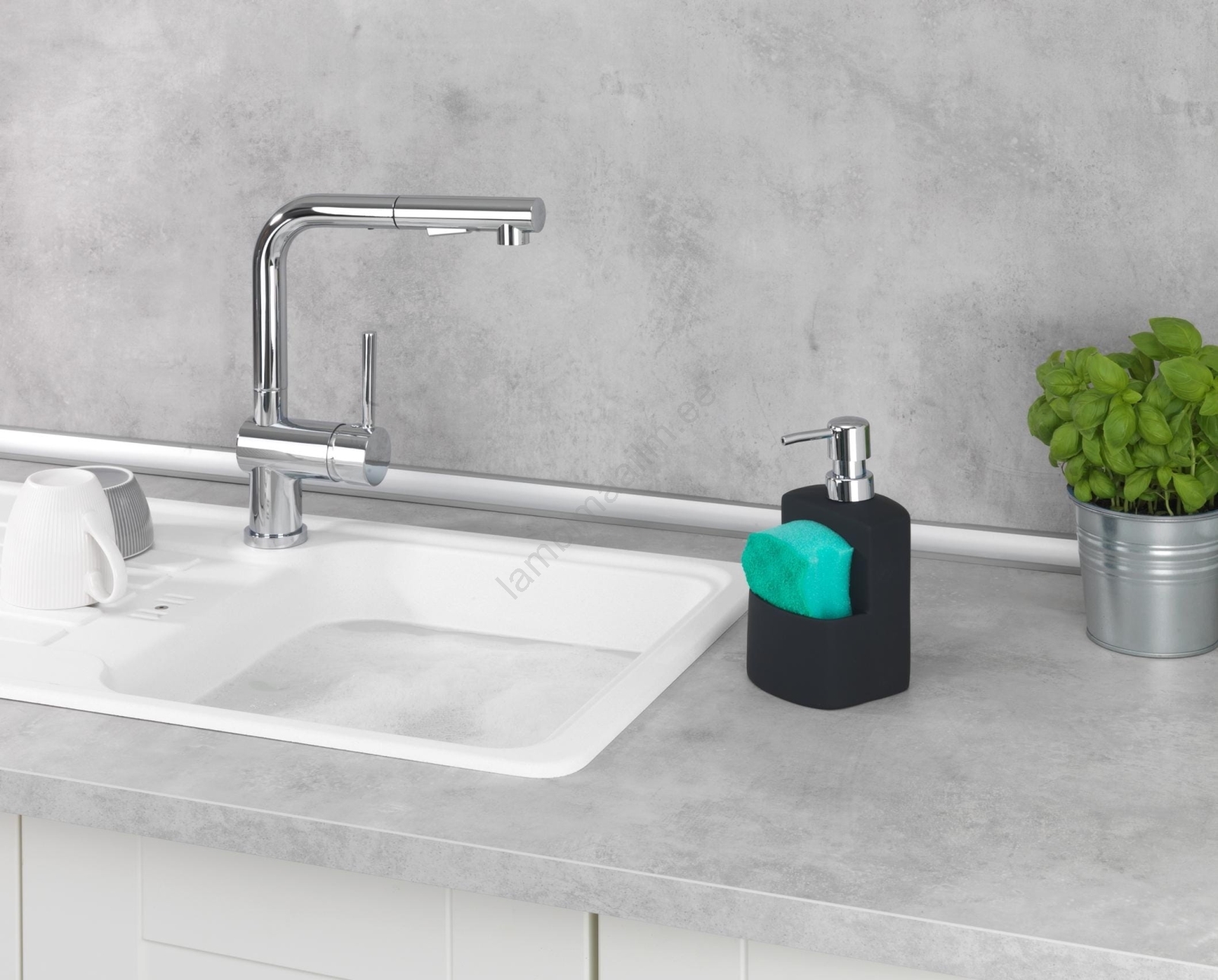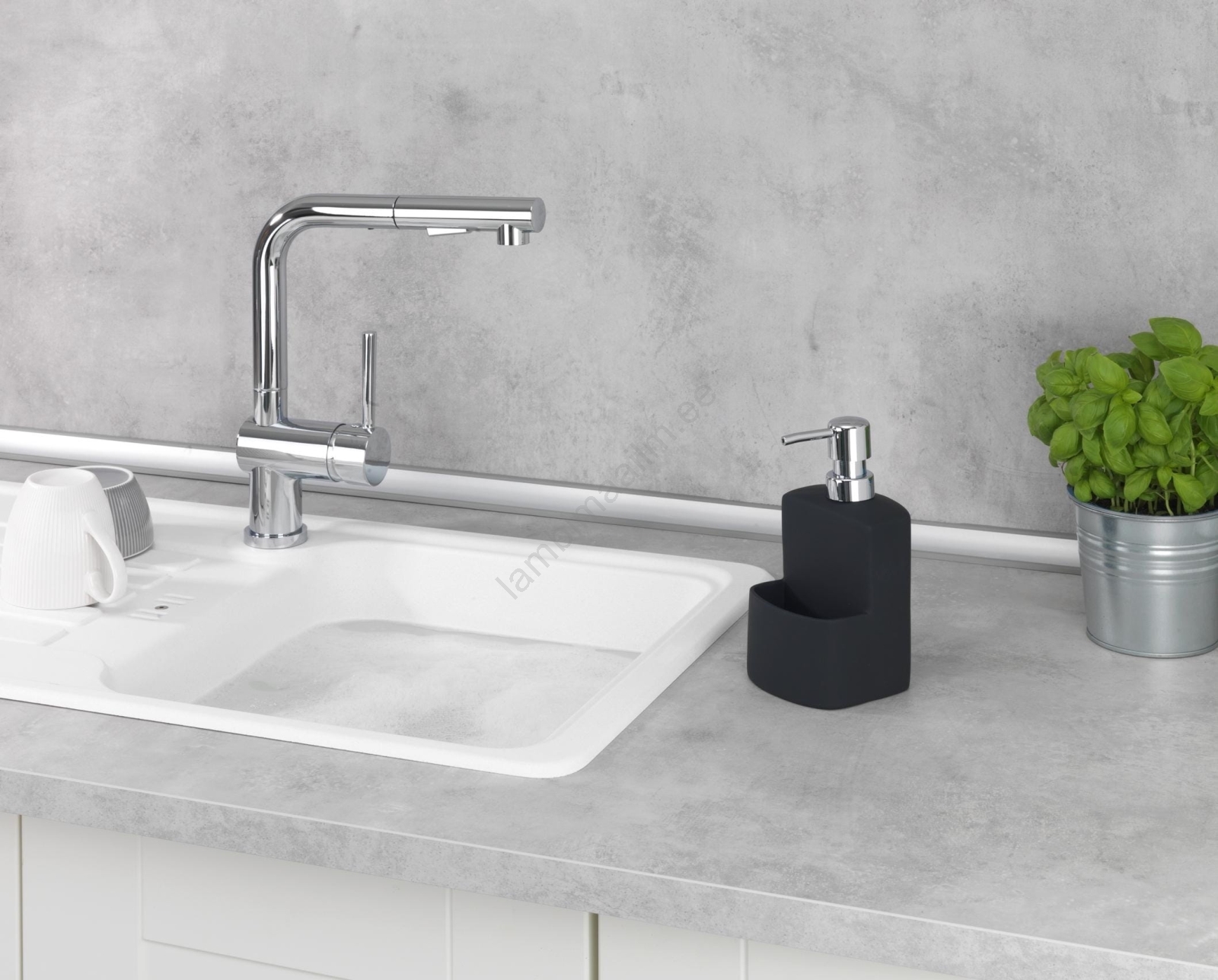 • Elegantne seebi- ja nõudepesuvahendiannustaja mustas viimistluses.