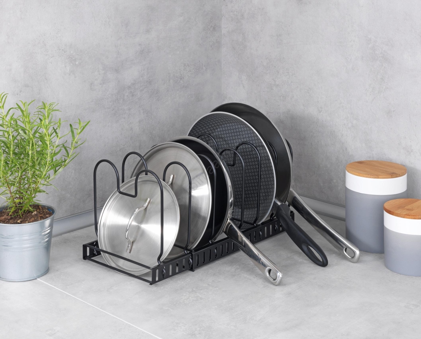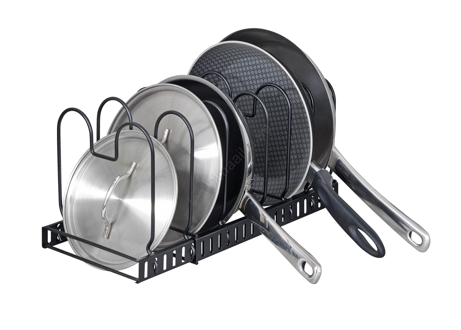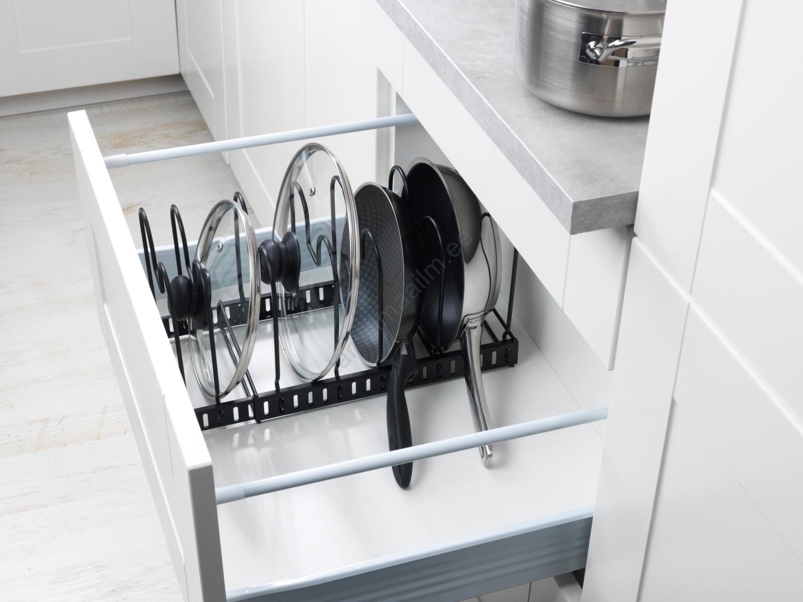 • Võimaldab ruumisäästlikku ja ülevaatlikku kaante, pannide, küpsetusplaatide või lõikelaudade hoiustamist.
