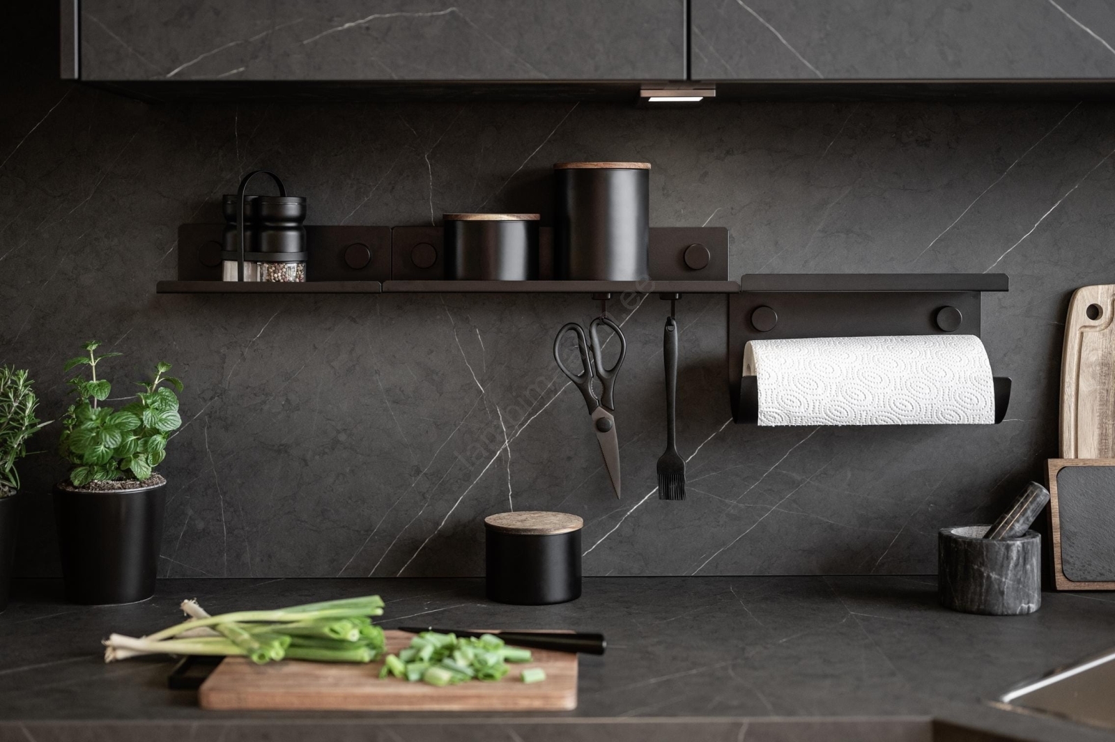 • Must viimistlus sobib kaasaegse tööstusstiiliga kööki.