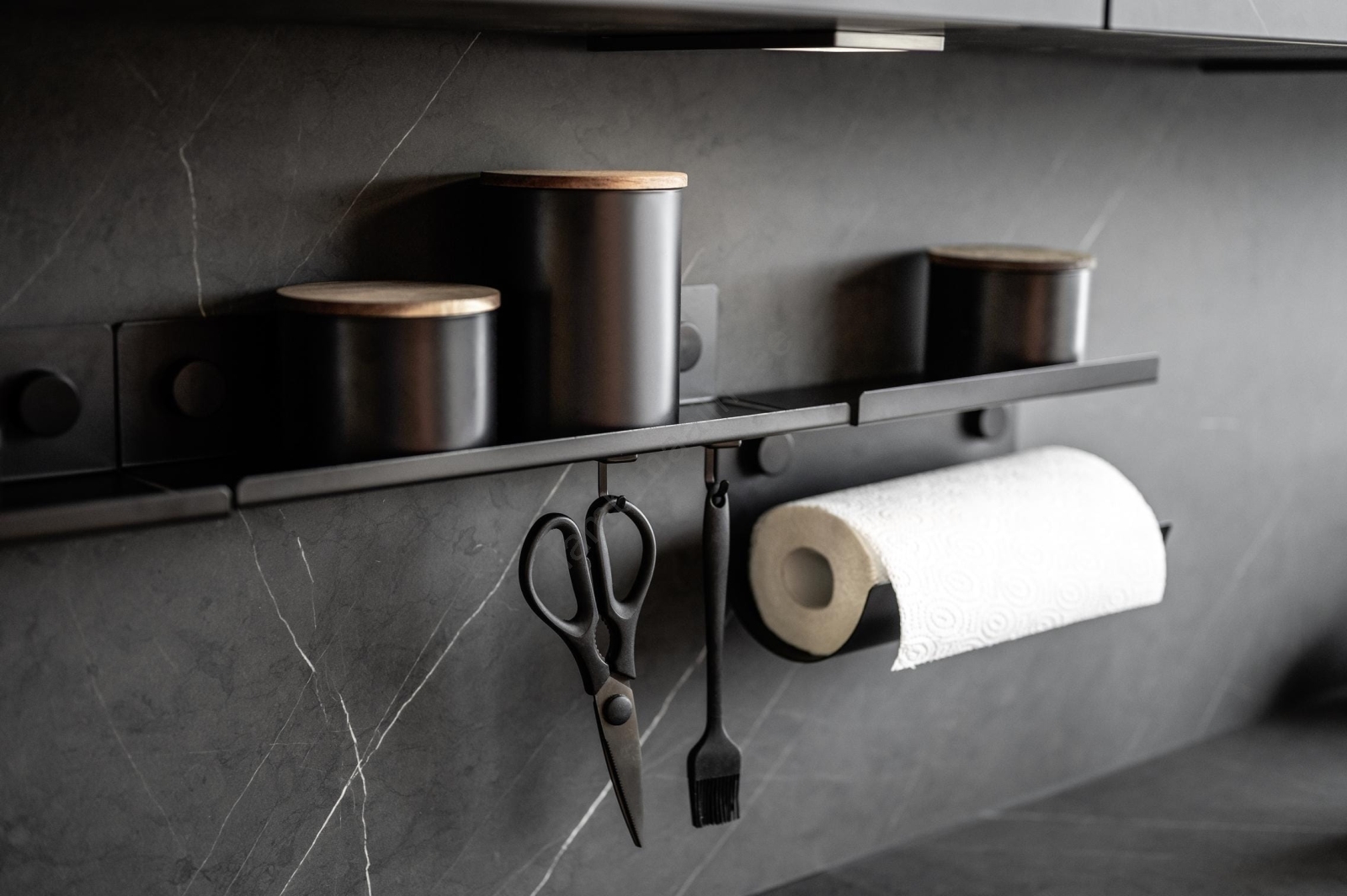 • Elegantne WENKO Jet seeria köögipaberi rullihoidik modernses mustas disainis.