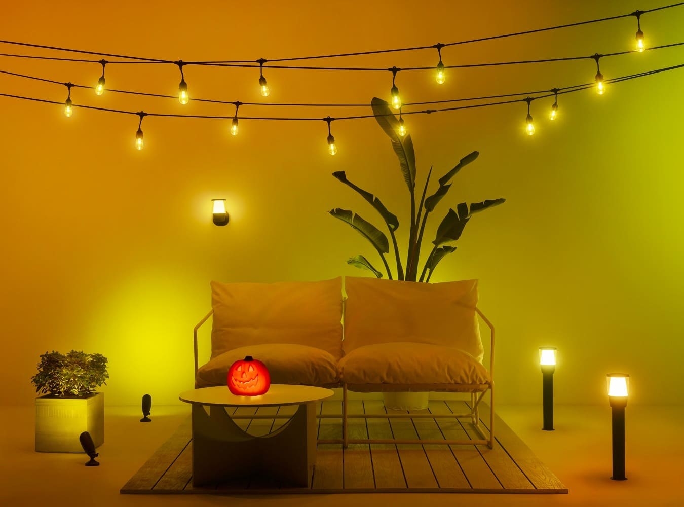 • See nutikas valgustussüsteem, mis on täielikult integreeritud tehnoloogiaga Smart WiZ Connected, võimaldab teil kohandada oma aeda või õue rikkaliku värvivaliku ja valguse intensiivsusega.
